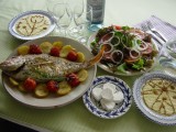 | いただく食事会です。上質なオリーブオイルをふんだんに使った自然食は、日本人にもなじみやすいお料理です。 |